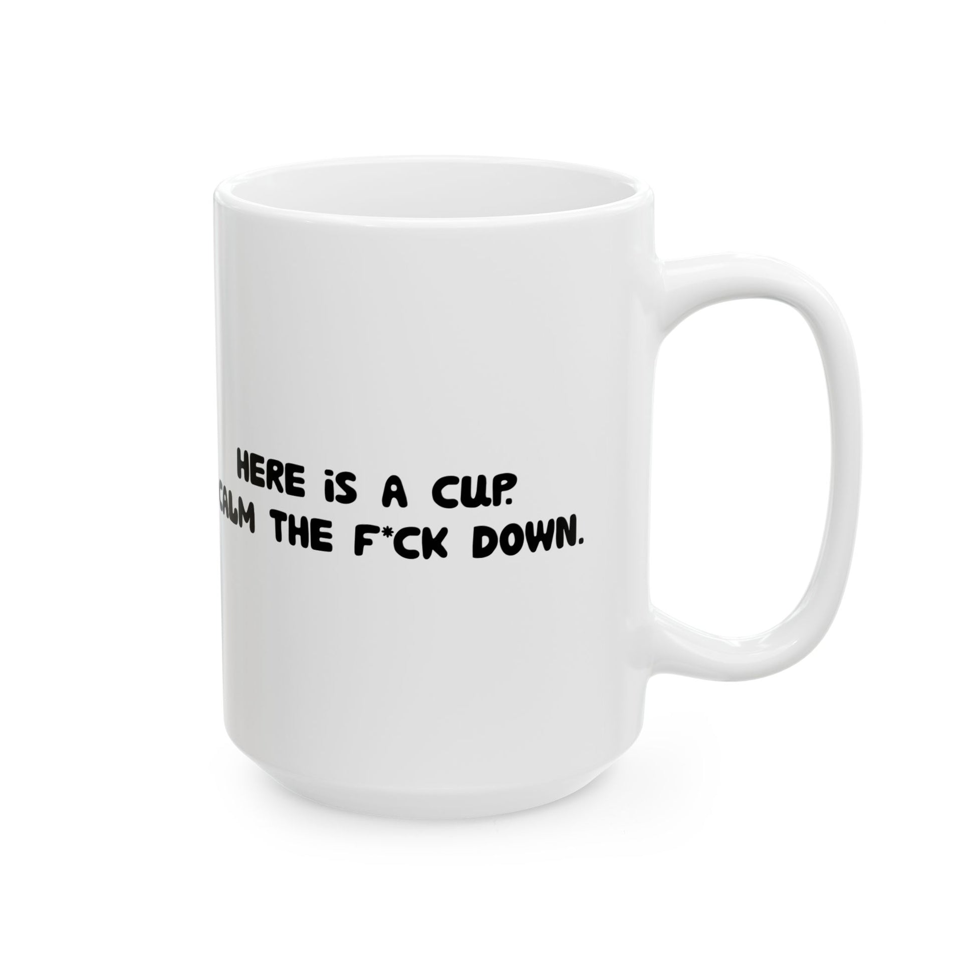 Funny Ceramic Mug - 'Here’s a cup. Calm the f*ck down.' 11oz & 15oz
